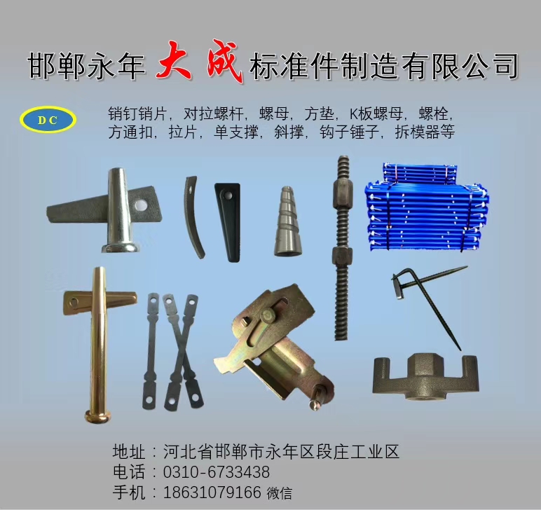 點(diǎn)擊數(shù):52762019-07-08 15:54:18 來(lái)源: 鋁模板銷釘_鋁模板配件_建筑扣件螺栓_扣件螺絲生產(chǎn)廠家-永年區(qū)大成標(biāo)準(zhǔn)件制造有限公司